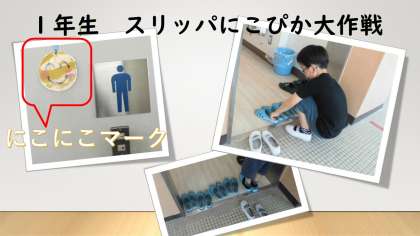 1年生では,「スリッパにこぴか大作戦」をしています。