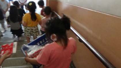 食器のバランスがくずれたり,階段を運んだり,重たい食器も,二人で協力して運ばなければいけません。まだまだ1年生は大変な様子ですが,任務を果たすために一生懸命がんばっています。