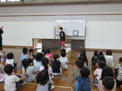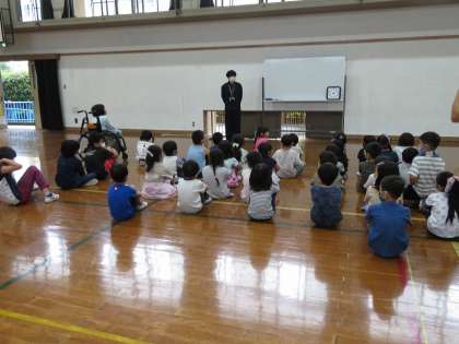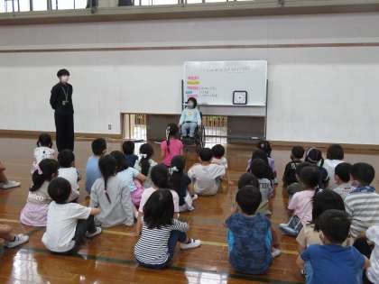 体育館で1年生や2年生のお友だちが
