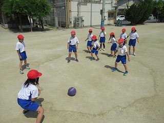 体育では,ボールあそびの学習を始めました。