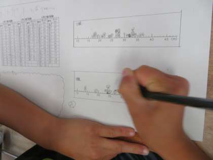各クラスの資料をドットプロットに表すことで資料のちらばりの様子が分かりやすくなりました。