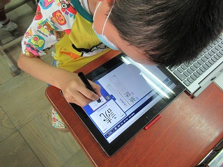 タブレット型パソコンの使い方にもだいぶ慣れてきた子どもたちです。