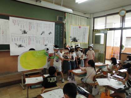 みんなで力を合わせてかぶをぬく様子を再現し,