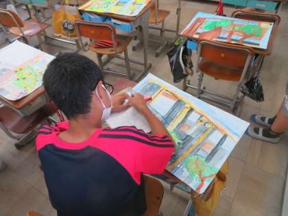 図画工作「校舎と植物」を描き,鑑賞をしました。