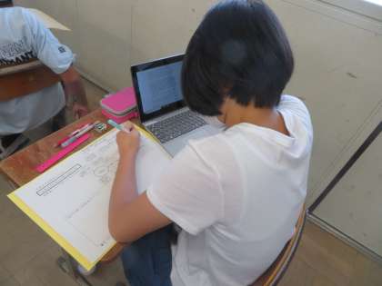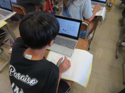 淡路島の特産物や歴史などをGIGA端末で調べ,ワークシートに記入していました。