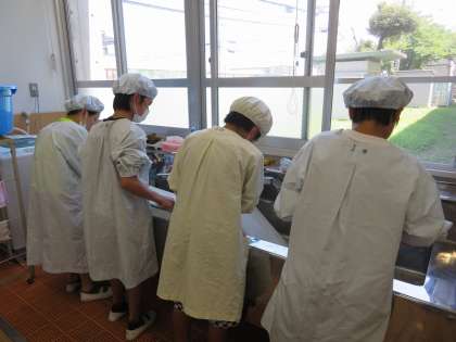 みんなで作り,給食の時間に食べました。