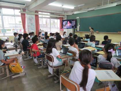 5時間目,3年生全員GIGA端末を使って学年集会をしました。