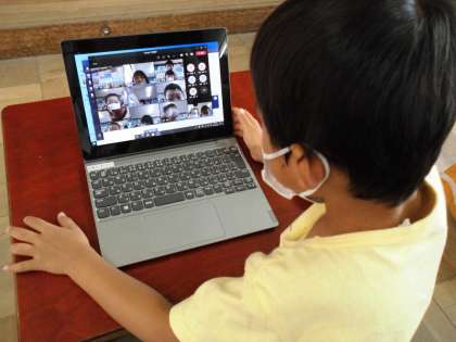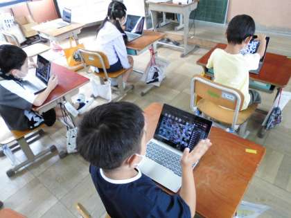 今日はそれぞれのタブレットの画面にクラス全員の顔が映ることがゴールです。