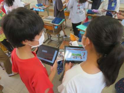夏休みにあったことをスライドにし,交流しています。