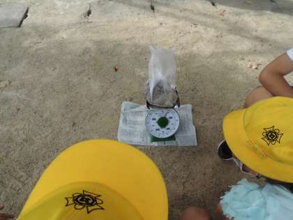 算数科『重さ』を学習しています。1Kgはかりや2Kgはかりの目盛りの読み方を学習した後,「1Kgってどれくらいの重さなんだろう?」という課題をみんなで考えました。ビニール袋にちょうど1Kgになるように砂を入れます。出来上がった砂袋を持ってみると「意外と重い!」「いや,軽いで!」などいろいろな意見や感想が聞こえてきました。