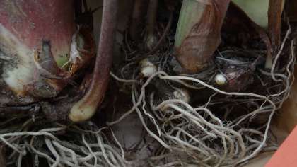 その茎につながっているのが里いもです。この大きな里いもにびっくり