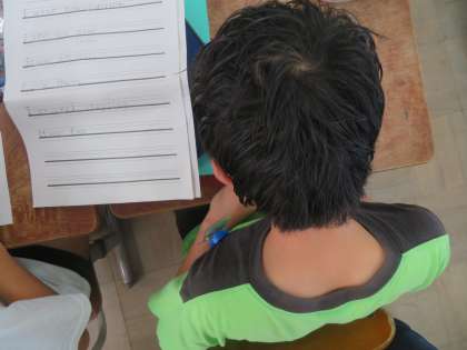 読み方がわからない表現は本人に聞きに行き,意味を推測していました。