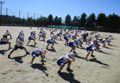 汗をかいて元気いっぱいに練習を重ねています。