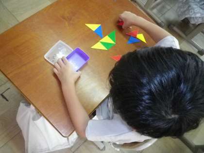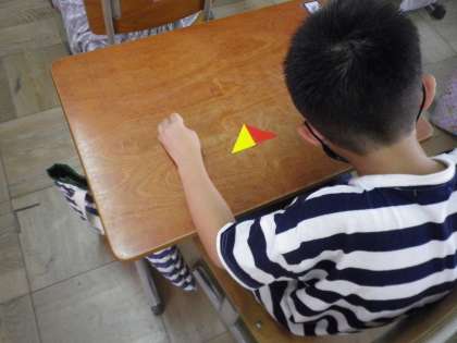 三角のをいろいたを使って,いろいろな形をつくる活動をしました。