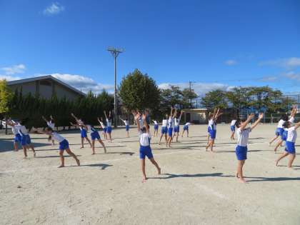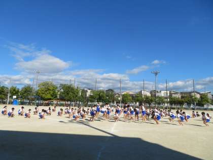 小学校最後の体育参観。学年の心が1つになるように真剣に練習に取り組んでいます。
