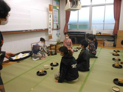 「作法がいろいろあって,正直面倒だなと思うこともあったけれど,『作法の一つ一つには意味がある。』とお茶の先生が教えてくださり,思いやりや礼儀の大切さがわかりました。」と伝統文化のよさに気付いていました。