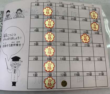 5年生は7級までが受験可能範囲です。