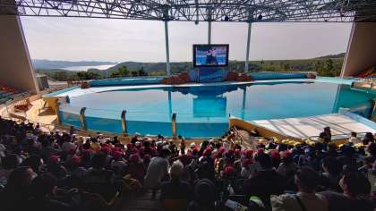 イルカショーが始まります。ドキドキです。