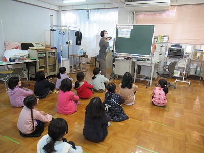 視力検査の前に,養護教諭から「手洗い」についてのお話を聞きました。