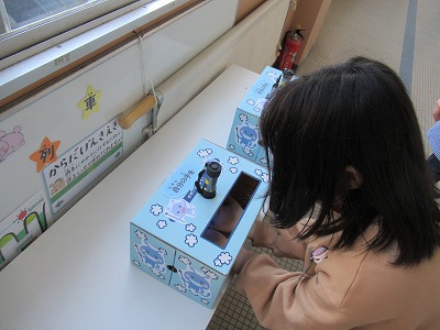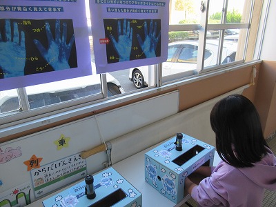 検査の後は,魔法の箱を使って手洗いがきちんとできているか観察しました。