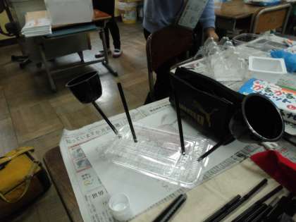 プリンカップやペットボトルなど,身の回りにはたくさんの空き容器があります。これらの容器を使って,小物入れがつくれないかな?と考えました。