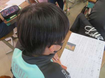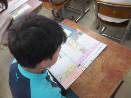 今日は友達のパンフレットを読み合い,工夫を見つけていました。
