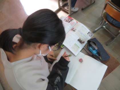 「どのようにして国際的地位が向上したのか」教科書を使って調べています。
