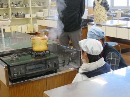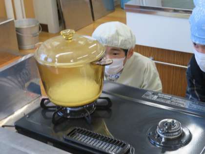 お鍋の様子をよく観察して,調節していました。