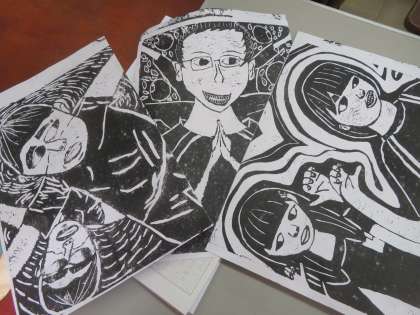 掘りの作業が終わり,刷りの作業をしています。