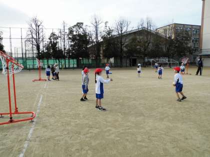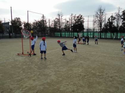 体育で「パスゲーム」を行っています。チームでボールをパスし合いながらゴールにボールを入れます。ルールが増えてきて,最初は戸惑っていた子どもたちですが2回目にはゲームに慣れてきて楽しむ姿が見られました。勝ち負けもありますが,何よりも仲間とともにどうしたら上手くいくか作戦を立て,自分なりに工夫して活動してくれることを期待しています。ボールを投げる・受ける,ご家庭でもできそうならキャッチボールのような遊びをやってみてください。