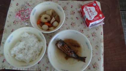 今日の献立は,ごはん・牛乳・いわしのしょうが煮