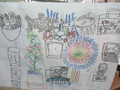 多くの子どもたちは,1年間一緒に学習した友だちや経験したことをバッグに描いています。