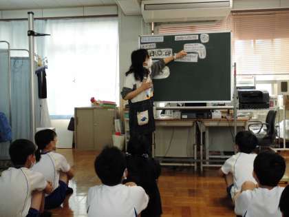 今日は保健室で養護教諭からのお話を聞いたあと