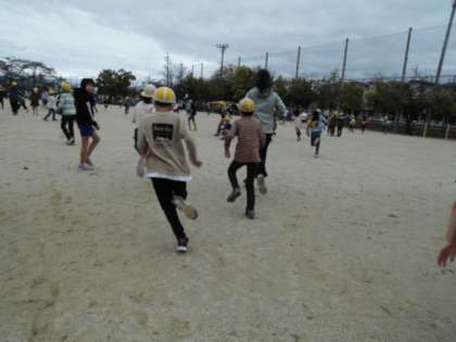 天気がいい日は、外でみんなでおにごっこです。休み時間の終わる5分前には、遊びを終わり3時間目の準備も自分達でやろうとする姿があります。
