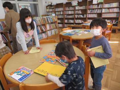 1年生は,初めて図書館へ行き,本を借りました。