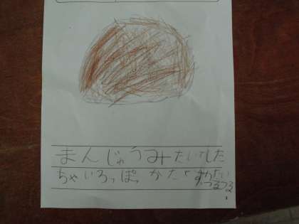 「スイカみたいな形!」「色は黒と茶色が混じっているみたい!」と,気づくことがたくさんありました。
