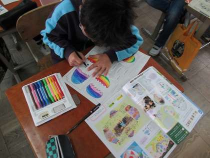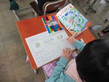 図画工作では,「ふしぎなたまごの」絵を描きます。