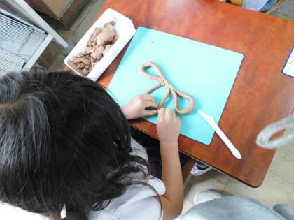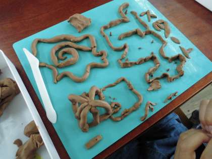 「リボンを作ったよ!」「迷路の中に温泉を作ったよ!」とひもひもねんどで自分だけのひもの世界を作りました!