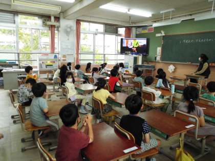 今年も事前に撮った各学年の動画をクラスごとに見ました。