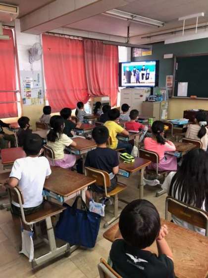1年生を迎える会は,全校で同じ時間に動画を視聴しました。3年生は学校での遊び方や勉強の仕方などを紹介した動画を作成しました。自分達の番になるとやはりそわそわ嬉しそうな様子でした。どの学年も力作の動画で最後まで楽しみながら見ることができました。