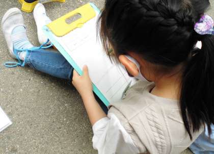 あさがおの芽が出たので,初めて探検バッグをもって観察に行きました!