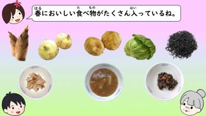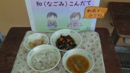 「和(なごみ)献立」では,だしのうまみや季節感や旬を味わうことのできる献立,伝統行事にちなんだ献立等,和食の特徴やよさを知り,より味わうことがでるように工夫しています。