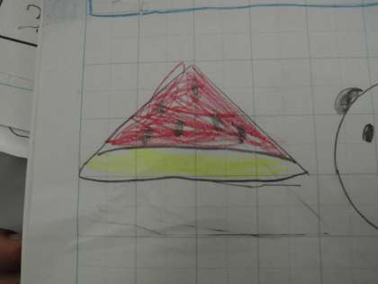「スイカだよ!」「かさみたい!」と素敵な絵になりました!