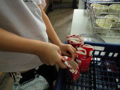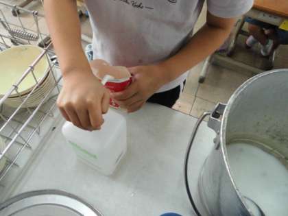 1年生は,牛乳を飲み切る→→→牛乳パックをぺたんこにすることをがんばってきました。