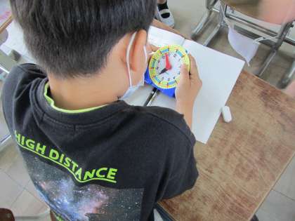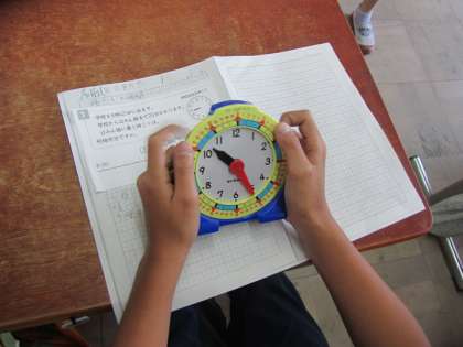 算数科の学習では「時こくと時間」の学習に取り組んでいます。