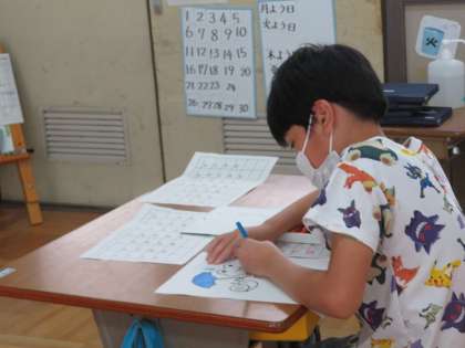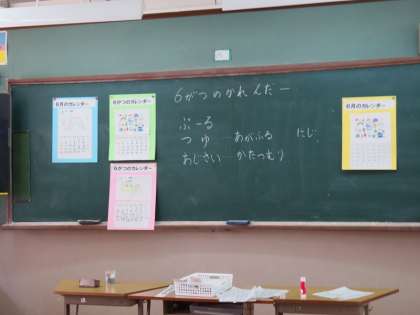 高学年は,自作のカレンダーに今月の予定を書込み,