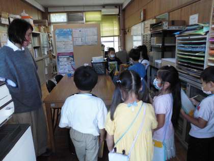 校長室や,事務室では,直接先生たちにお話も聞くことができ,「楽しかった!」「こんなものがあったよ!」と学校名人への一歩を踏み出しました!