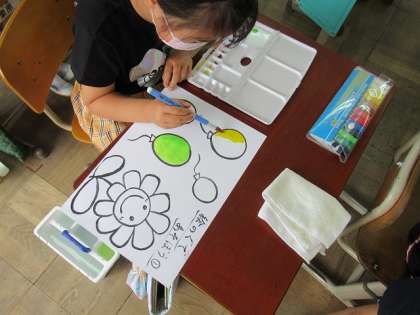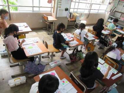 今日は,初めて絵の具セットを使って学習をしました。