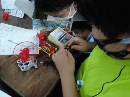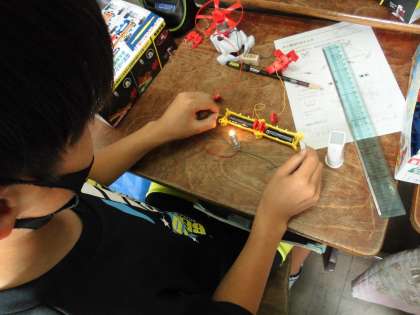 さらに豆電球の明るさ比べも行い,理解を深めていました。
