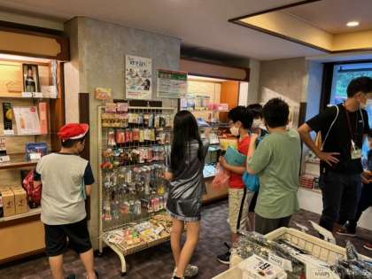 海月館一階のお土産物売り場で買い物をしました。子どもたちはあれかな?これかな?と考えながら買い物をしていました。いつもお世話になっている人に素敵なお土産が渡せるといいですね。